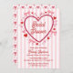 Set the stage for a love-filled celebration with this romantic Valentine-inspired bridal shower invitation. Featuring soft pink stripes, a bold heart frame, dainty bows, and playful swirls of hearts, this coquette-style design is perfect for honoring the bride-to-be in sweet, feminine style.