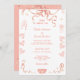O convite de casamento do estilo da moda da moda com algum talento vintage, da matiz rosa quente aos elementos efêmeros, reunidos para criar um design alegre e divertido. Flores e fitas brancas, o texto está pronto para você personalizar seus próprios detalhes e textos. Inverte para o quadro de fita e as iniciais simples do casal