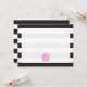 Um presente com um padrão de fundo listrado em preto e branco. Personalize com o seu monograma num círculo rosa inspirado na aquarela.