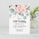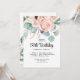 Um belo e feminino convite de aniversário para celebrar este aniversário especial do marco, este design apresenta um adorável buquê de papoilas aquáticas, rosas, eucalipto e vegetação rasteira em bege pastel, rosa, verde e azul-esverdeado. Celebre o convidado de honra em estilo encantador com este design único em formato de convite. Personalize o modelo de texto com os detalhes do evento. Outros produtos correspondentes estão disponíveis neste tema de design. Por favor, observe que todo o texto deste convite pode ser editado, para que você possa mudar a idade de aniversário para qualquer idade.