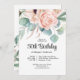 Convite Cor de Água Rosa e Beige Floral 50º Aniversário