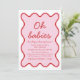 Convite Cor-de-rosa e Chá de fraldas vermelho moderno ondu