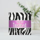 Convite cor-de-rosa roxo do aniversário da zebra