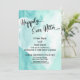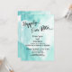 Convite Coração de Aquarela Azul Esverdeado Branco Feliz P