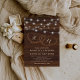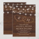 Convites de casamento de celeiro rural com fundo de madeira rústica, dois corações esculpidos, suas iniciais e um modelo de texto de casamento que é fácil de personalizar.