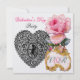 CONVITE CORAÇÃO DE RENDAS E ROSAS ROSA CUPIDO MONOGRAMA DE