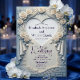 Convite Coração de Tapeçaria de Rosa Azul Romântica Esculp