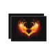 Coração de anjo com asas flamejantes em fundo preto.