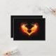 Coração de anjo com asas flamejantes em fundo preto.