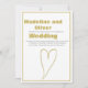 Um simples coração dourado com texto em negrito é a base deste convite de casamento personalizado exclusivo.