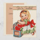 Um estilo retrô fofo dos anos 50, esta menina está abrindo sua caixa cheia de corações. De um cartão vintage do dia dos namorados.