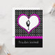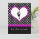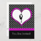 dentro de um coração cor-de-rosa, com um padrão pontilhado de polca preto e branco atrás dele. É fornecido um campo de texto personalizado para facilitar a adição dos detalhes do evento!