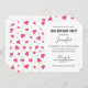Um convite de aniversário com um padrão fofo composto de corações cor-de-rosa e verdes em um fundo branco.
