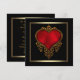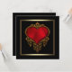 Coração de cetim vermelho rico com acabamento dourado ornamentado convite de casamento elegante dramático formal preto e dourado vermelho.