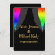 Os tons de arco-íris do Orgulho Gay brilham sob os smokings destes dois noivos no dia do casamento.