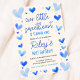 Nossos convites de festas primeiros aniversarios com um tema adorável de corações azuis.