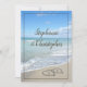 Concentre-se nos nomes da noiva e noivos e nas iniciais na areia da praia, desenhada dentro a coração! Elegante Sand Hearts Beach Destination Wedding Invisions apresentam uma bela imagem cênica da água do oceano aqua turquesa clara, com ondas brancas caindo sobre a luz do que a praia de areia. 2 corações encrencados simbolizam o amor eterno! Flórida Beach Design e visualize online com suas informações.