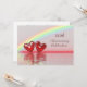 Convite de aniversário de 40 anos de rubi com um arco-íris e dois corações vermelhos rubi brilhantes flutuando na água. Personalize o texto de exemplo no verso com suas próprias informações para o seu evento.