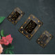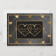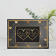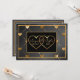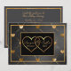 Um convite de casamento preto e dourado elegante que combina corações dourados e molduras retangulares em um fundo preto. Escolhi o papel Columned para realçar este convite.