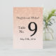 Corações espalhados sutis caem sobre este delicado cartão de Número de Mesa rosa poeira em um estilo gradiente "ombre". Este item faz parte da Coleção de Casamento Corações Espalhados Rosa Poeira. Personalize com os detalhes do seu casamento selecionando o botão "Personalizar" e editando o texto de exemplo mostrado no modelo à direita da tela. Você pode alterar as fontes e tamanhos de fonte, bem como mover ou reorganizar o texto ou alterar a redação para atender às suas necessidades e preferências.
