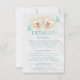 Cartão de detalhes do casamento mexicano Corações Brancos e Pombas Turquesa, em espanhol.