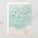 Linda onda oceânica de cor-d-água e abstrato de turquesa brilhante e cor-de-água no fundo da praia de areia, repleta de na moda e serifa elegante, moderna e simples. Convite para casamento de excelente para casamento de praia náutica, casamento de destino tropical, casamento temático no oceano costeiro no verão.