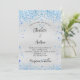 Um fundo com aspecto fino de prata decorado com corações azuis. Personalize e adicione seus nomes e detalhes do casamento. Letras pretas coloridas.