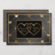 Um convite de casamento elegante preto e dourado que combina corações dourados e quadros retangulares num fundo preto. Escolhi o papel Columned para dar realce a este convite. Há um cartão de Save the Date e de Resposta para acompanhar este convite, além de alguns acessórios.