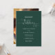 Este convite de casamento simples e elegante pode ser personalizado com os detalhes da sua celebração definidos em tipografia sofisticada em um fundo esmeralda com a sua foto especial no verso. Concebido por Thisisnotme©