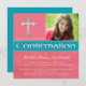Convite Coral, Aqua, Foto de Confirmação de Prata