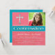 Convide todos os seus amigos e familiares para a Confirmação da sua filha em Cristo com este convite de confirmação de cinzas cor-de-rosa, azul turquesa e prata com uma Cruz de prata e uma área de modelo para que você carregue a foto da sua filha. A escolha do papel e todo o texto é personalizável. Se você precisar de outros itens neste estilo de design, como cartões de agradecimento, cartões de agradecimentos de fotos ou qualquer outro item para tornar este dia especial extra, envie um email para niteowlstudio@gmail.com.