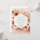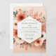 A delicate design featuring soft coral and blush floral blooms with hints of greenery. Evokes a romantic and whimsical feeling, perfect for a springtime or summer occasion. The artwork showcases blooming anemones and roses.