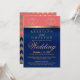 Convite Coral e Marinho Azul com Corações Dourados - Perso