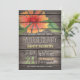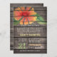 Convite à festa de solteira com laranja de coral, vermelho, amarelo, flor verde, design floral no campo de colheita rústica ocidental, madeira de celeiro, fundo estampado de madeira com fontes elegantes e antigas. Perfeito para Festas de solteira de temas de campo, fazenda, fazenda, caserna! Este convite giro e divertido é o excelente ano redondo para primavera, verão, outono ou festas de solteira de inverno!
