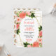 This fun and whimsical birthday party invitation features watercolor coral pink red roses and foliage on a gold geometric frame. The text combines handwritten script and serif fonts for a stylish and modern look. This is perfect for a spring or summer rustic birthday party.