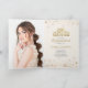Palha cor-de-rosa e coral floral Quinceañera festa de aniversário dobrada convite com brilho dourado, boque e lanternas. Decorado com uma tiara ouro. A dentro desta placa lhe dá um espaço para adicionar uma foto especial.