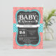 Convite Coral Teal Chalkboard Floral Chá de fraldas Invite