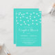 Casais elegantes e brancos convite para chás com luzes de fadas suspensas brancas sobre fundo turquesa de cor d'água. Este convite à turquesa é perfeito para qualquer tema ou estação.