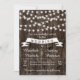 As luzes de cordas elegantes, em conjunto com uma faixa que segura a palavra "WEDDING" na madeira adoram este convite de casamento rústico. Uma escolha ideal para o seu casamento de verão ou cair ao ar livre.
