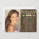 Adicione a sua foto favorita a estas cordas florais rústicas de luzes doces dezesseis convites com uma foto no aqua azul, coral, verde, marrom, branco, amarelo e marrom com um lindo fundo de madeira que lembra uma cerca de madeira e/ou um barril. Uma coroa de louros composta por bolotas, bagas, girassóis, rosa de tulipas e flores brancas sentam-se num ramo de folhas. O verso do convite pode ser personalizado com o nome do evento e personalizado com o nome da aniversariante. Perfeito para uma queda ao ar livre, hora da noite, campo, fazenda, quintal ou quintal rural, os doces 16. As charmosas luzes de brilho e de fadas com efeito de boque parecem brilhantes, quentes e convidativas. Trabalho de arte © Chrissy H. Estúdios, LLC. Todos os direitos reservados.