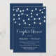 Convide a família e os amigos com este convite para chás elegante e caprichoso. Apresenta luzes de fada brancas suspensas e uma escrita caprichosa. Este convite para luzes de cordas é perfeito para chás de casais ao ar livre.