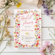 Celebre a noiva a ser com este chá de panela encantador, adornada com uma delicada coroa aquática de flores silvestres em matizes vibrantes. O design floral pintado à mão exalta charme e romance, fazer perfeito para chás de panela primavera, verão, jardim ou com temas "boho". Uma bela maneira de juntar os entes queridos para uma celebração especial antes do casamento.