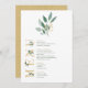 Cores d'água elegantes, verde e folhas de ouro para o menu de casamento em um fundo branco nítido. Menu em letras douradas decoradas com folhas verdes e douradas. Design simples e minimalista.