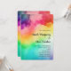Um convite de casamento com um fundo de aquarela com cores do arco-íris.