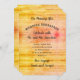 Cores do nascer do sol, convite de madeira rústica para o café da manhã de casamento na manhã após a celebração do casamento. Cores rosa e amarelo do nascer do sol com letra cursiva em negrito, texto curvo e impresso convidando convidados especiais a desejar "boa viagem" aos recém-casados. Cantos recortados são opcionais. Atualizações de papel especial estão disponíveis.
