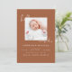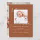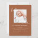 Este modelo de anúncio de nascimento de foto apresenta um design moderno minimalista com uma fonte escura manuscrita com uma combinação boho terracotta e cor branca. Use esta modelo para editar o texto *mais*, a fonte, a cor da fonte e a cor do plano de fundo para corresponder ao seu estilo.