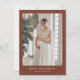 Este convite para o chá de fraldas moderno apresenta uma fonte escura e escrita à mão e um design moderno minimalista com uma combinação boho terracotta, ferrugem e cor branca. Adicione facilmente a sua própria fotografia à parte de trás para obter um toque pessoal único.