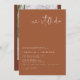 Este convite de renovação de votos apresenta uma tipografia manuscrita arrojada e um design moderno minimalista com uma combinação de cores rust boêmio e branco. Adicione uma foto no verso para um toque pessoal.