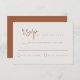 Esta placa RSVP de resposta ao casamento apresenta uma fonte escrita à mão e design moderna minimalista. O seu esquema de cor laranja queimada e bege, na Terra da Boêmia, faz dele o cartão RSVP perfeito para a sua suíte de casamento industrial ou contemporânea. *A maior parte* do texto é editável e este cartão de resposta pode ser usado em qualquer ocasião. Use facilmente seu chá de panela, chá de fraldas, festa de aposentadoria, etc.