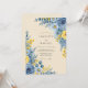This design features a vibrant watercolor palette of cornflower blue and sunny yellow, creating a cheerful and elegant atmosphere. Soft blue roses and daisies are artfully accented by golden craspedia and silver dollar eucalyptus foliage. A warm cream backdrop enhances the painterly details of this seasonal botanical arrangement.